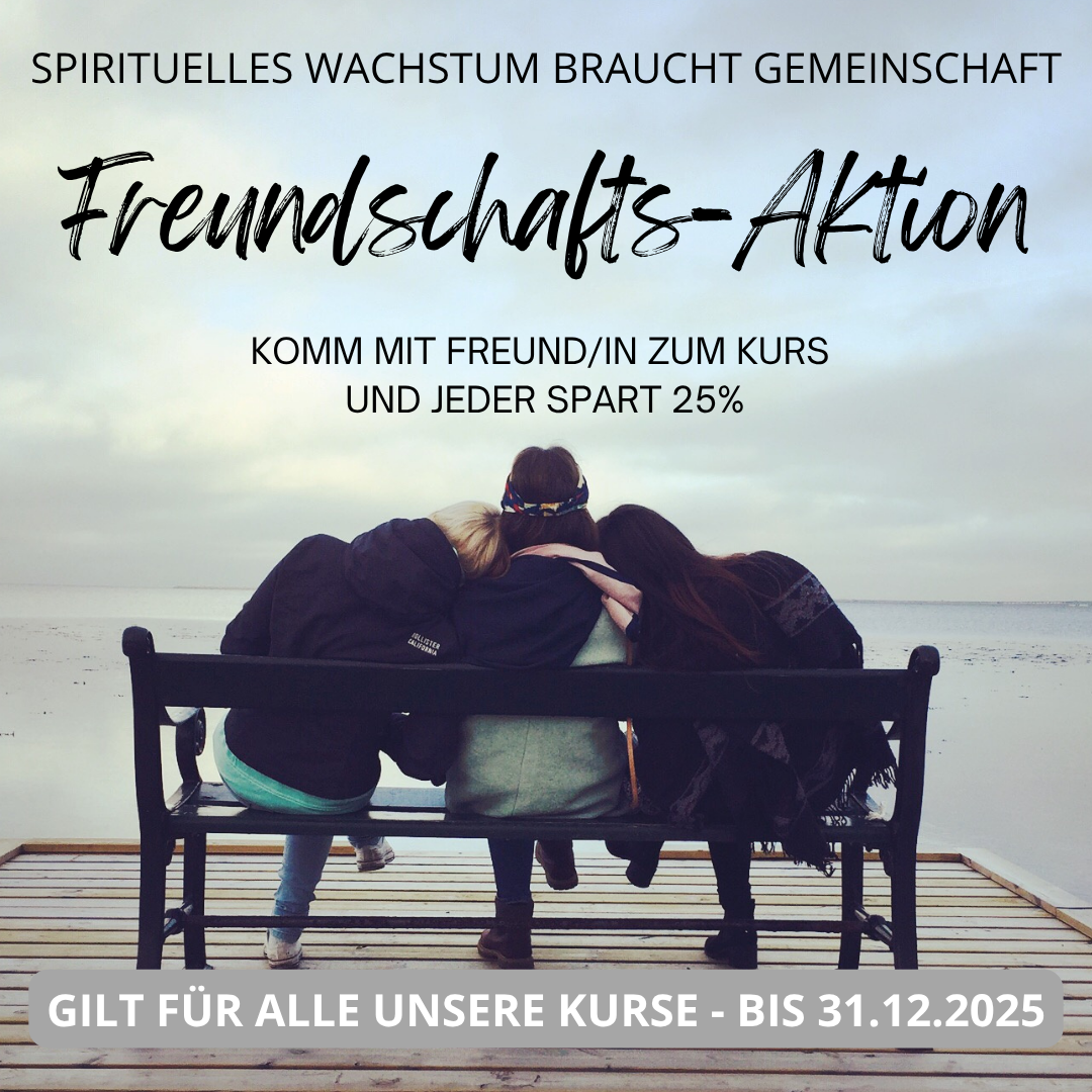 Bring eine Freundin oder einen Freund mit in dein Seminar und ihr erhaltet beide 25% Ermäßigung auf den Seminarpreis.